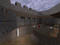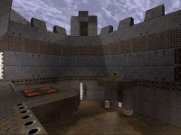 lower level and a hidden ROS; another small two storey atrium containing the SNG and the YA on the upper floor; the final area consists of two single floor rooms, one above the other - the upper room contains another RL and the YA, the lower room contains the MH and a DBS. Ammo and health are liberally and evenly scattered through the map, while the LG is conspicuous by it's abscence. Connectivity between these areas is mostly good, each area has 2-4 entrances/exits. Vertical connectivity uses some stairs, but also the most important feature of the map: wind vents! These are placed in the middle of the main and RA atria, and