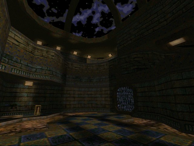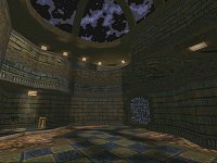 Don't think for a second though that going through a teleporter will put you safe. Far from it, GrindSpire's evil teleporter placement is such that the exits are all in the same atrium. So, for example, leaping through the middle TP will just drop you out onto the ground floor so that anyone above can still get you! There is also a teleporter exit that could have been better placed. On the upper floor of the largest atrium you come out almost facing a wall and a sharp turn to the left once gave me a nice surprise. The Tick had aimed a rocket straight for my head. *Gibbed*