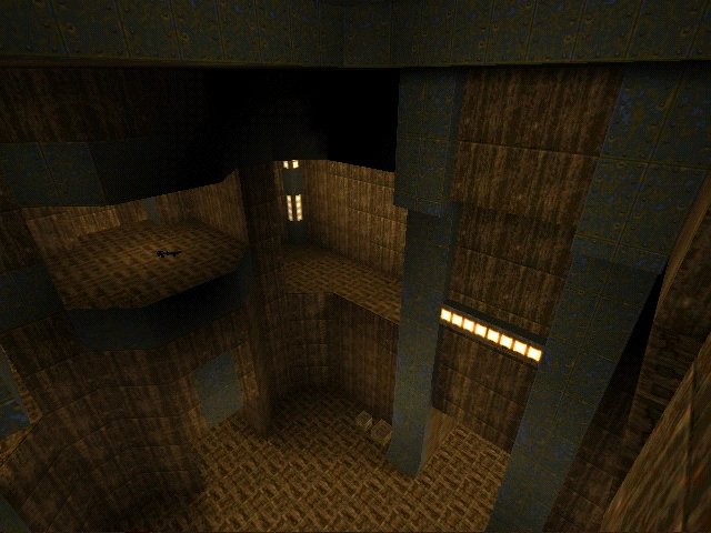 The item placement is possibly one of the worst things about the map. The weapons are placed in strange ways so that the nailgun is hard to reach and the rocket launcher sits out in the open. The one weapon placement that I like is a grenade launcher, which sits on a ledge over looking one of the atriums, perfect for grenade spamming. The placement of the special items deserves special mention, as it is very badly set out. For a start there are two quads very close together. Two quads in a map generally is not a good idea, two quads placed closed together is definitely not. There is also the problem of the ring of shadows and the pentagram. These are placed next to each other and quite near to the quad. If someone manages to get all three then they become ridiculously powerful and literally unstoppable, not a good choice of location.