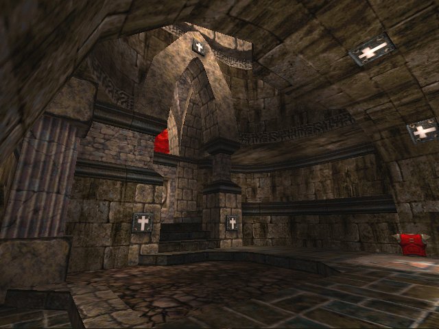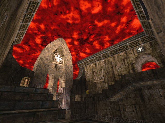 Auhsan has recently made some highly acclaimed maps for Quake III Arena, however, he has made also made some equally good maps for Quake and it is the last of these that I am looking at today. The level has an amazing sense of place, it really feels like you are inside of a cathedral of some kind with imposing ceilings and supports. It is an impressive level just to walk around, let alone play.