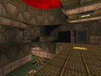 The ellipse shapes used in architecture in a couple of sections of the map are novel. One particular use for it is the lowed pit containing the MH shown in the first screen shot. This actually makes for some evil playing tactics as you can pummel the stairs out whilst the bots in all their confusion hop about trying to leave. Of course it's not so nice when you get stuck in there, but you can always rjump out.