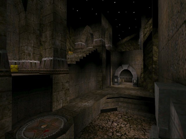 So after three publicly released versions (try beta testing next time ;)) we have, hopefully, a finished map, which does inherit a lot of its style from Q3a. The architecture is the most obvious thing with the large archways reminiscent of Peej's OMA remake. To be honest though I noticed little difference through the various released versions. The only thing I did notice was some better clipping so that bots didn't get caught so much.