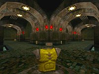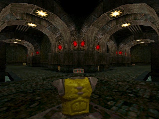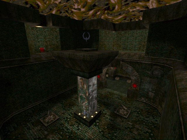 Rorshach's "Jackboot" textures decorate this small compact map from the lovable Fat Controller. Grit, grime and graffiti scar the dark marble green brick walls whilst pictures of Blade Runner adorn the lumbering column in centre of the map. Grand curved archways (as you can see in the screenies) hold up the outer ring of corridors.
