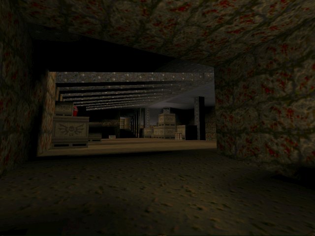 The metal parts are, in my opinion, very well done indeed. The small idbase portions effectively telegraph the locations of the teleporters (this has to be admitted) but the rest of the map, with its endless miles of blood-sprinkled brick, lacks character. An occasional splash of colour enhances, but here bloody brick has been overused.