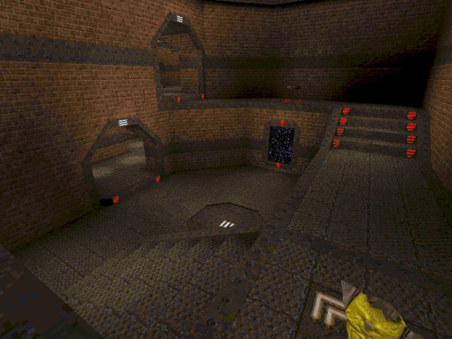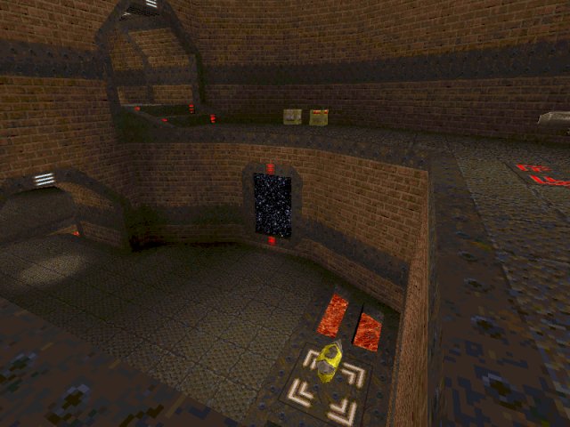 The DM6/DM2 flourishes are obvious: In one downstairs corridor are two moving floor panels you can fall through if you're not careful (just like DM2), and one atrium has a door in the floor accessing the Thunderbolt's hideyhole. From there you teleport out to the Megahealth position - just like in DM6.