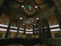 Elek's first DM Quake map is different. Different because it's certainly not something you'll have seen done before. The centre of the map is like a huge capsule with huge curved wind tunnels surrounding it.