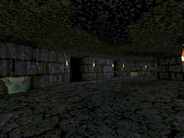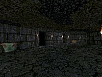 It's a box. A nice box, perhaps: one large hall with raised walkways along the sides, big sweeping staircase and cramped dungeony things on one end and a balcony at the other. Texturing seems to be a mixture of just about anything the maker could get his mitts on - metal, medieval, Rogue, Zerstrer... Basically feels like a mess. Lighting is fairly bland and unimpressive.