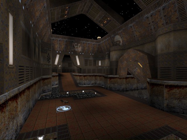I love the use of those texture(from Daikatana right?) to let folks know where the rl and stuff is. Even if someone's taken the weapon, it's very easy to learn where things are so you know where to go.