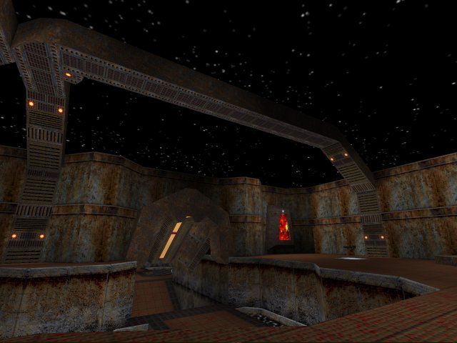 Ammo is on the low side but there is plenty of weaponry in there (I think all the weapons are in there) so it's not like you haven't got something to shoot with. 1-on-1 ain't too bad. If you keep tabs on the RA/YA/Quad you shouldn't have too many problems. What is slightly different is that most of the health is in the watery sections, as is the MH which underneath one of the ramps. This kinda gives away your location but as I've said earlier the teleporter help make your exit easy.