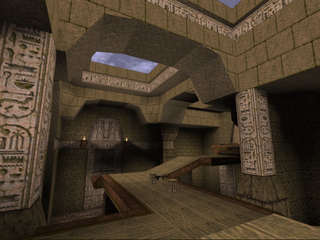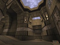 Tronyn's latest piece has strong echo's of his previous map (Halls of the White Wizard) with the suspended platforms and large airy spaces. There also seems to be a vague feeling of Unreal in here, and if some water had been in there you could have mistaken it for the temple sections of Unreal.
