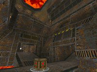 There is plenty of detail in there for pure visual appeal if you can get into the mix of boiler house textures and grating. Gen seems to have this knack for blending perfectly normal sane architecture with twisted, bent and malformed (like with Reinc3 - Dysaesthesie) to give something that quite frankly at times is amazing. There is a honeycomb network of one-way drop down passageways that connect up the various floors and the unwary will no doubt fall down them due to their, at times perplexing, placement. As an example there is one half way up a staircase so you just fall straight down. I found that happened very often when you went up them backwards trying to fire at an opponent, but it does provide a very quick method for escaping. It was funny watching that happen, someone suddenly dropping out of view.