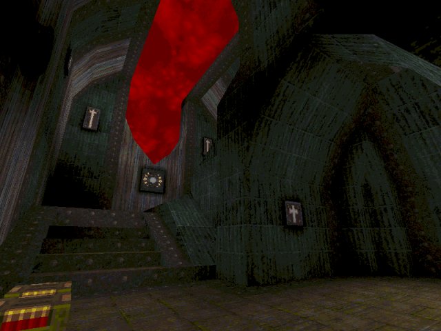 At first glance this runic-style map appears to be decked in classic id metal, but look again: Kingpin textures adorn the walls, while id metal acts as trim. There are also swathes of discoloured planking, which looks a little strange at first. However, you'll soon get used to it.