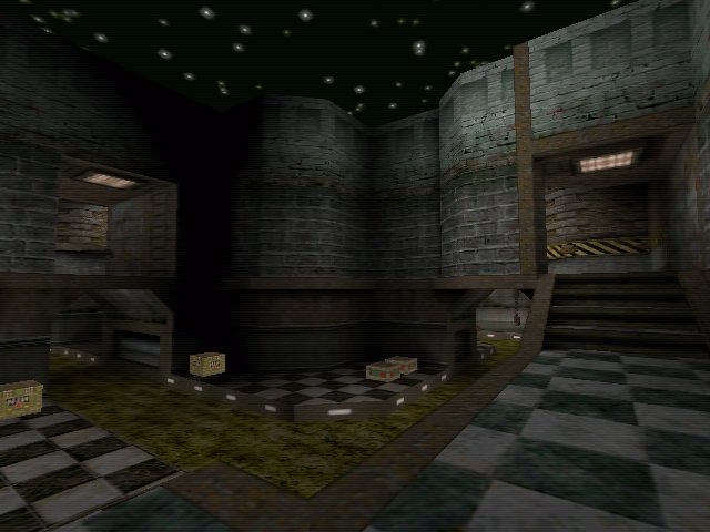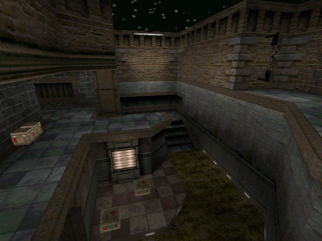 r_speeds are low throughout the map and no greyflash was visible in software quake so nobody should have problems playing the map. providing you have the omi route installed the bots play very well and get all the weapons and items, but sadly do not go for the Quad damage. All in all a very fun map for the close quarters specialist.