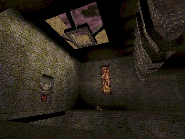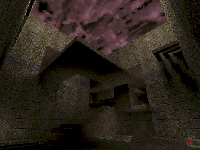 Gameplay is actually quite hairy. Power tools are parked in tight corners near the action stations (as well as in the middle of corridors), and armour and health seem scarce - and usually placed on the far side of a firefight! There is a megahealth you have to rocket-jump to above a narrow stairway and a red armour on a platform you also must RJ to over one of the main kill zones (though I never seemed to make it.)