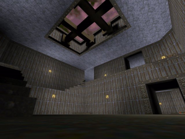 gameplay is above average as a 1-on-1 and 3 player FFA games were not very spectacular. The thing that stands out in this map though is the item placement. It really does draw you around the entire map. The red armour is very well placed in a high risk area, where enemies can shoot you though the roof above or come at you head on through a close teleporter...