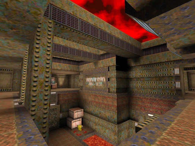A more adventurous style map from moRgoth after Infernal Base. A cornucopia of textures from IKBase and Rubicon make up the bulk of the map. There are a couple of clashes but for the most part the mixture of texture sets works well. There are the obligatory crate stacks but they don't impede play so they're more for decorative purposes (which makes a change). The architecture isn't that detailed with the texturing doing the work here but its still visually appealing.