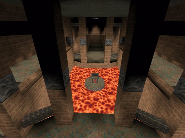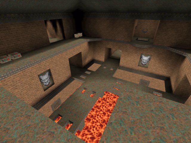 The map also has quite a good layout, a nice double layered main atrium and dead end areas where you can get red armour or megahealth. The Quad is nicely positioned at the top of the main atrium where it is best I think.