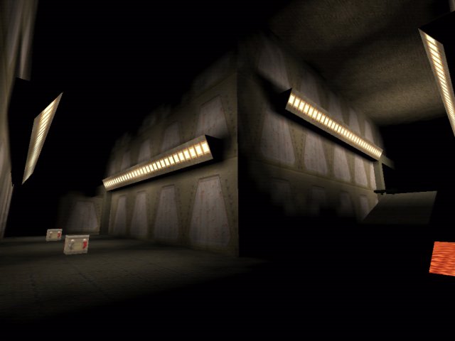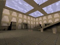 A rather dull duelling arena awaits you here, a large main area with 2 side corridors containing weapons and ammo. The map could have done without these as they are not needed, Megahealth, Red armour and rocket launcher ( + ammo ) can all be located in the central room as well as a lightning gun and pentagram.