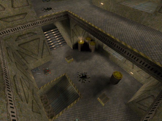 4+ player DM is absolutely great fun. The map is superb;y connected and item placement is spot on. The red armour room is particulary nasty as there is always someone in the water trying to grab the armour. Grenades rain down from above from the two located on the top level, and for all you crazy rocket jumpers there are two yellow armours at the top as well if you can get to them.