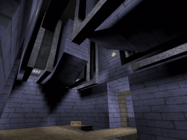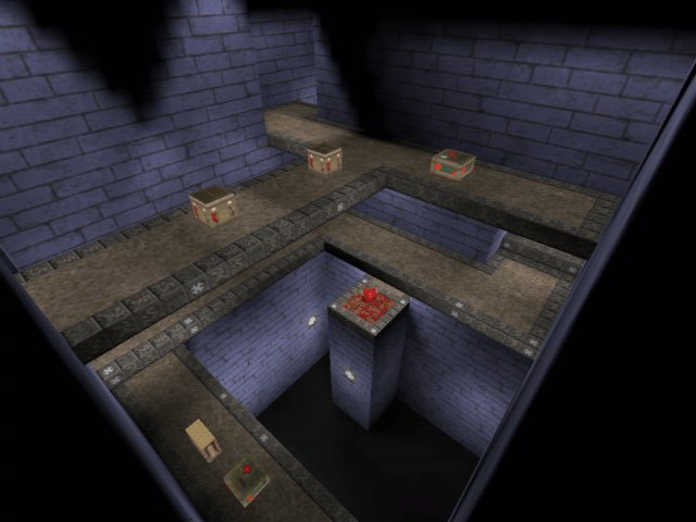 The blue seems to say to me "if you fall off, you'll die." I'm one of those people that dislike dm4, however I do like this map. And I quite like the looks - an original looking contrast between blue walls and the grey walkways, which i think go well together.