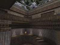 The selection of textures is interesting, with upper sections decorated in Kingpin brick and lower in mostly wizmet variant merged with rusted metal beams. The two themes do sort of go together, but the problem is that given the 3 atriums look very similar in terms of layout and how they look, its hard to pick out where you are. Even after playing for a while it was still difficult. Some visual pointers wouldnt have gone amiss. Regardless of what c0ld says there is some detailing. The upper sections have unfinished brickwork, with some sections looking random, whilst others have strangely rectangular sections missing.