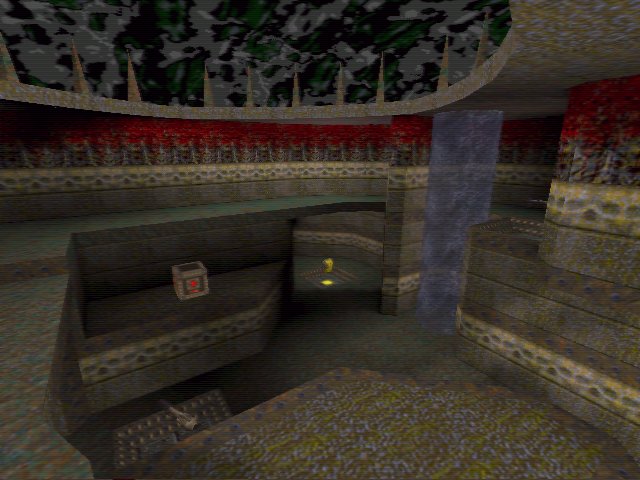 This map is the second in the Land of Nod trilogy. The first map, Insomnia, was reviewed last week. A complete change in style here. More of an evil hell type look. Theres the odd misalignment with textures, nothing major. Lighting is a little wierd. Given its dark texture set and grey sky texture you would think the lighting would be darker, with more shadows. It would definately add to the atmosphere.