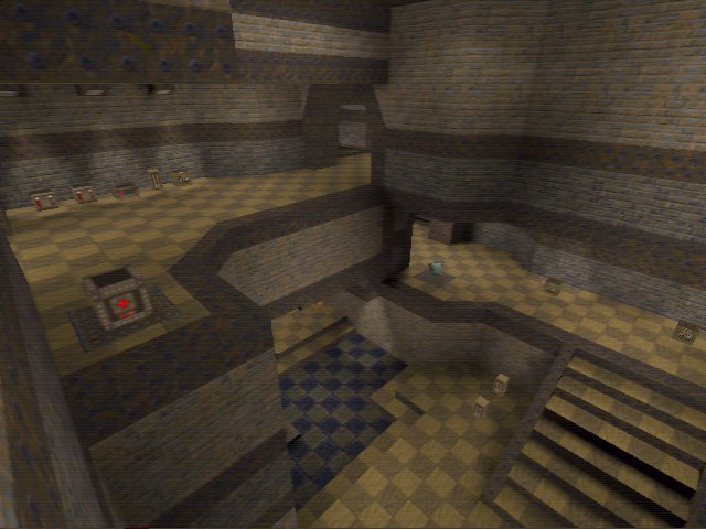 It also makes a step up in size, this map is more epic than his previous offerings. As such a higher player load is needed to comfortably keep a game going. Anyway, the layout is three large multi-level artiums connected via corridors, lifts and huge teleporters! You'd have to be pretty inapt to miss going into one.