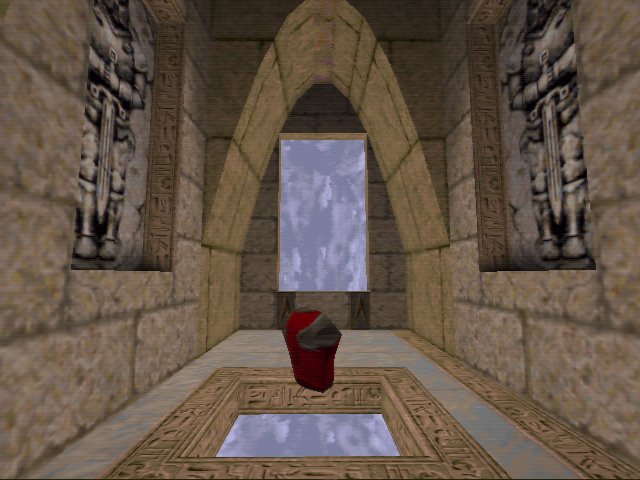 Again a complete change in style here. Its decorated in the egyptian set of textures. The architecture goes well with the textures used. Lots of curves are used and it gives it a unique feel. The teleporters are worth a mention. Where ever you see two brown arrows pointing up, then theres a teleporter there.