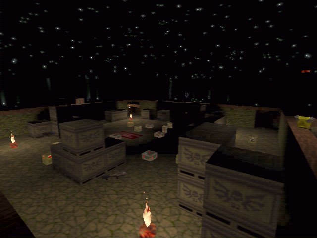 This map does play fairly well. Bots get move round it well enough and I didn't spot any problems. The frags did pile up very quickly so the authors claim of the map having over 1,000,000 frags since 2/7/97 on his server can be believed. The thing is thats its not a particularly original idea. The architecture is very simple and I've seen loads of maps like this. Big open area. Put in some obstacles to make it a little more interesting. It just doesn't inspire me.