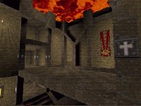 The layout is hard to describe. Steps are very rarely used and the main point of access between these levels is via great big whooping teleporters which you'd have to be blind to miss. The architecture for the most part is very square. Theres the old slanted surface. At times I got a little confused but if you follow the sound of gun fire you get back into the action quickly.