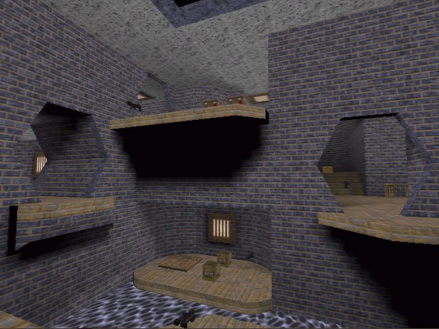 Er.. not quite. There's a few jumps that are 'not quite makable' unless you've got a jet pack (which I've never had in standard quake). So you hit the wall and fall into the water below, which is a sod. So you get outa the water and before your clothes can dry you've fallen in again. Grrrrrrrrrrrrr. There's slopy walls to get stuck on, there's stupidly fast staircases to overshoot on... there's... there's.. not a lot right with this map.