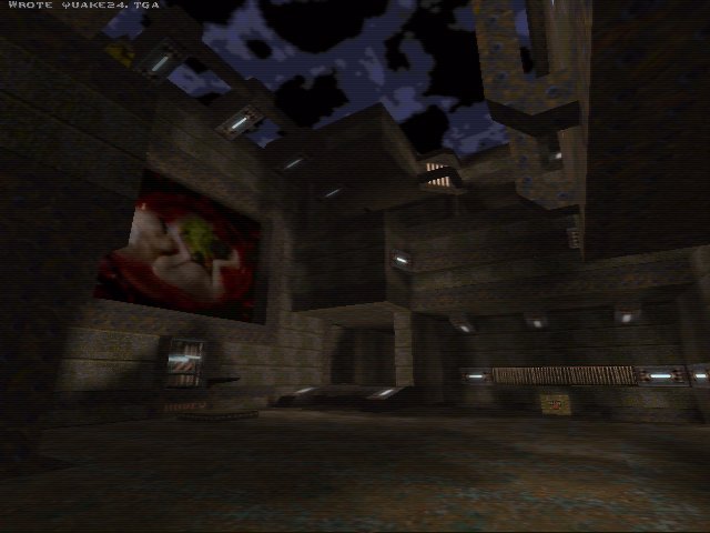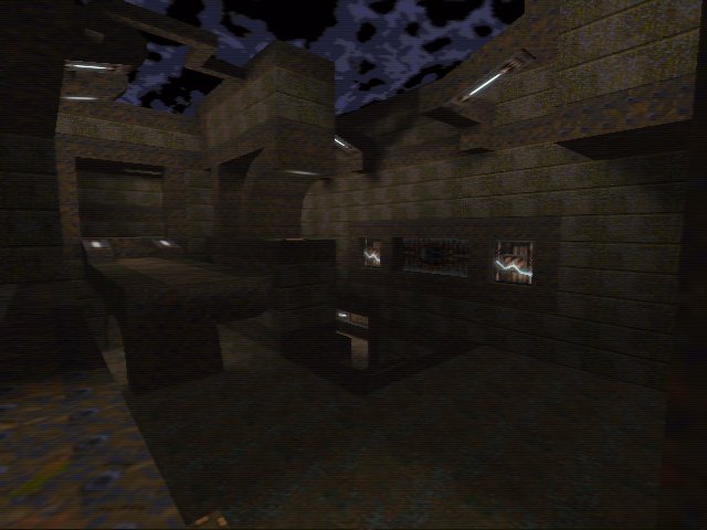 This map consists of 2 large multilevel rooms connected by various corridors and smaller side rooms. Architecture seems random and not well thought out, and often very unoriginal as is the texturing (the same textures you see in 80% of custom quake maps, i.e. wizmet1_2 and friends). Worst is the lighting which is very bland, it seems the author has used way too much ambient lighting which makes some bits difficult to see, especially in software.