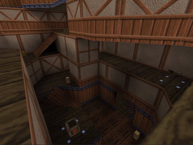 Original looking map. The texture set reminds me of Shadow Warrior. Also for some weird reason it reminded me of an Doom 2 map, in terms of layout that is. It has a very open layout and it gives no time to stop and enjoy the scenery. If you stop you'll get decked. At first I had a hard time getting to grips with it, after a bit of play though I got going. The map centres around the big atrium which is made up of four layers. Access between them is either by teleporters, ramps or air shoots.