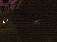 There are some nice touches like the moving platforms which you have to cross to get the quad and pentagram. There all also some odd things. To get the RL you have to do something really daft. If you jump on the flame (the nearest one on the left of first screenie), this opens the red circular window which gives way to a room containing the RL and some other items. Now just imagine trying to get these items whilst in the middle of game, is anyone going to bother to pick them up? No is the answer, they'll leave them, well I know I did. Maybe if it was 1-on-1, but otherwises no.