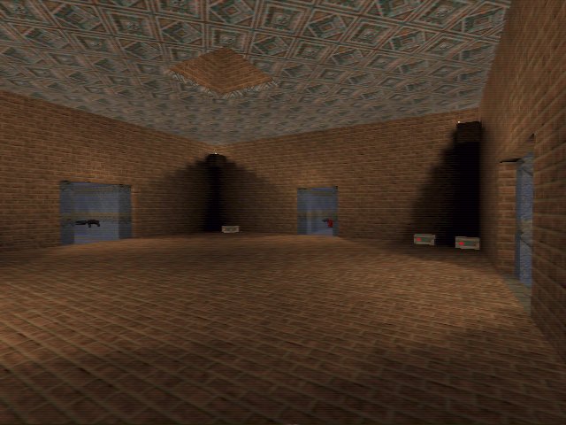 you start off in. These connect to a big room inside. Each corridor contains a weapon and a