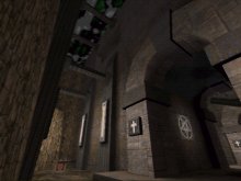 top floor of the map is decked out in the q1metal7 used in Timeless and is inset with a grey piping which works very